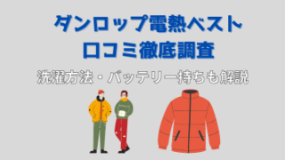 口コミで評判の「ダンロップ 電熱ベスト」を徹底解説。暖まりの速さや洗濯・お手入れのコツ、バッテリーの使い方を紹介。アイリスオーヤマ・ワークマンとの比較表も掲載。